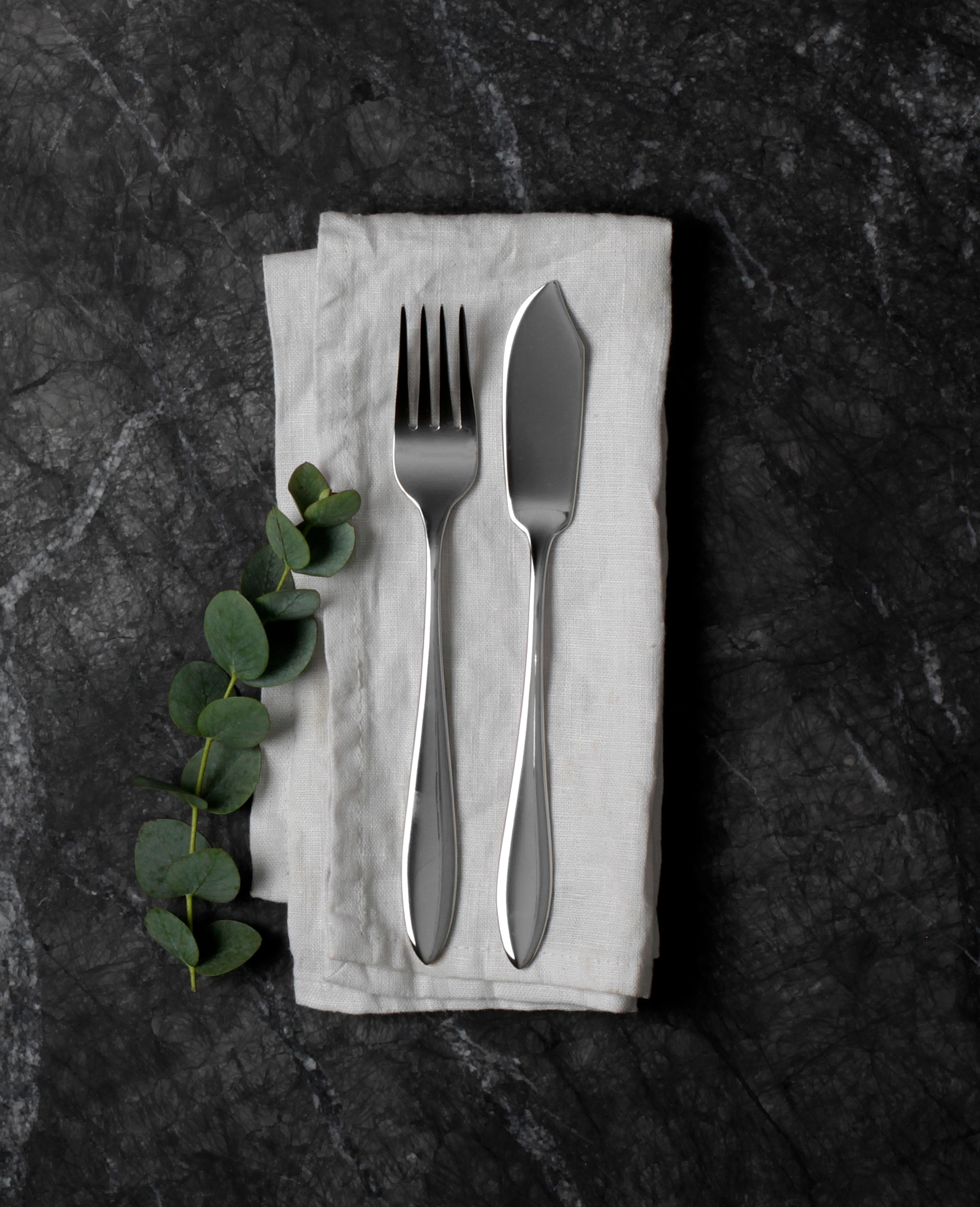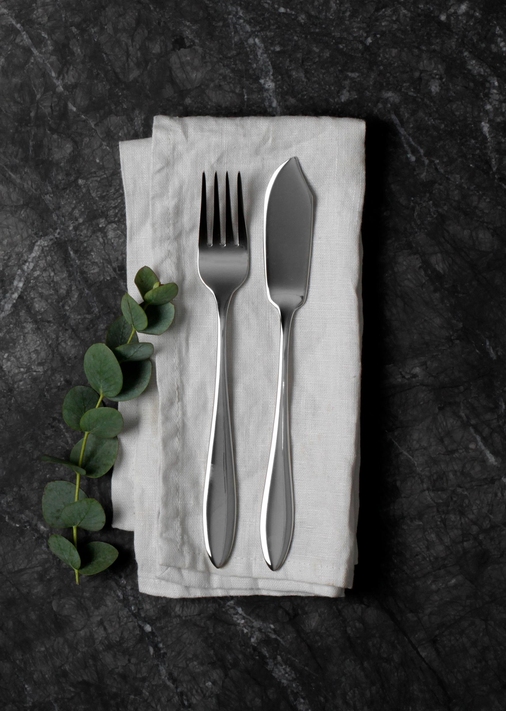 Fiskbestick. Består av en gaffel och en kniv och används för att äta fiskrätter. Fiskknivar har klassiskt ett bredare blad som ska underlätta att lyfta filén från fiskens skrov. Det hindrar dig inte från att duka med fiskbestick även om du serverar benfri fisk. Den rundade formen tillför ett organiskt element på matbordet.