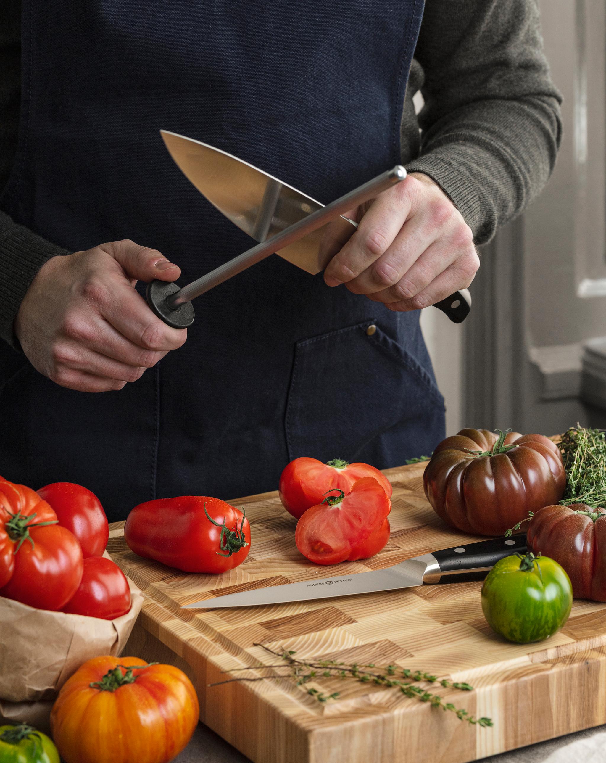 Knivar slits då de används, och behöver därför lite hjälp för att behålla skärpan.