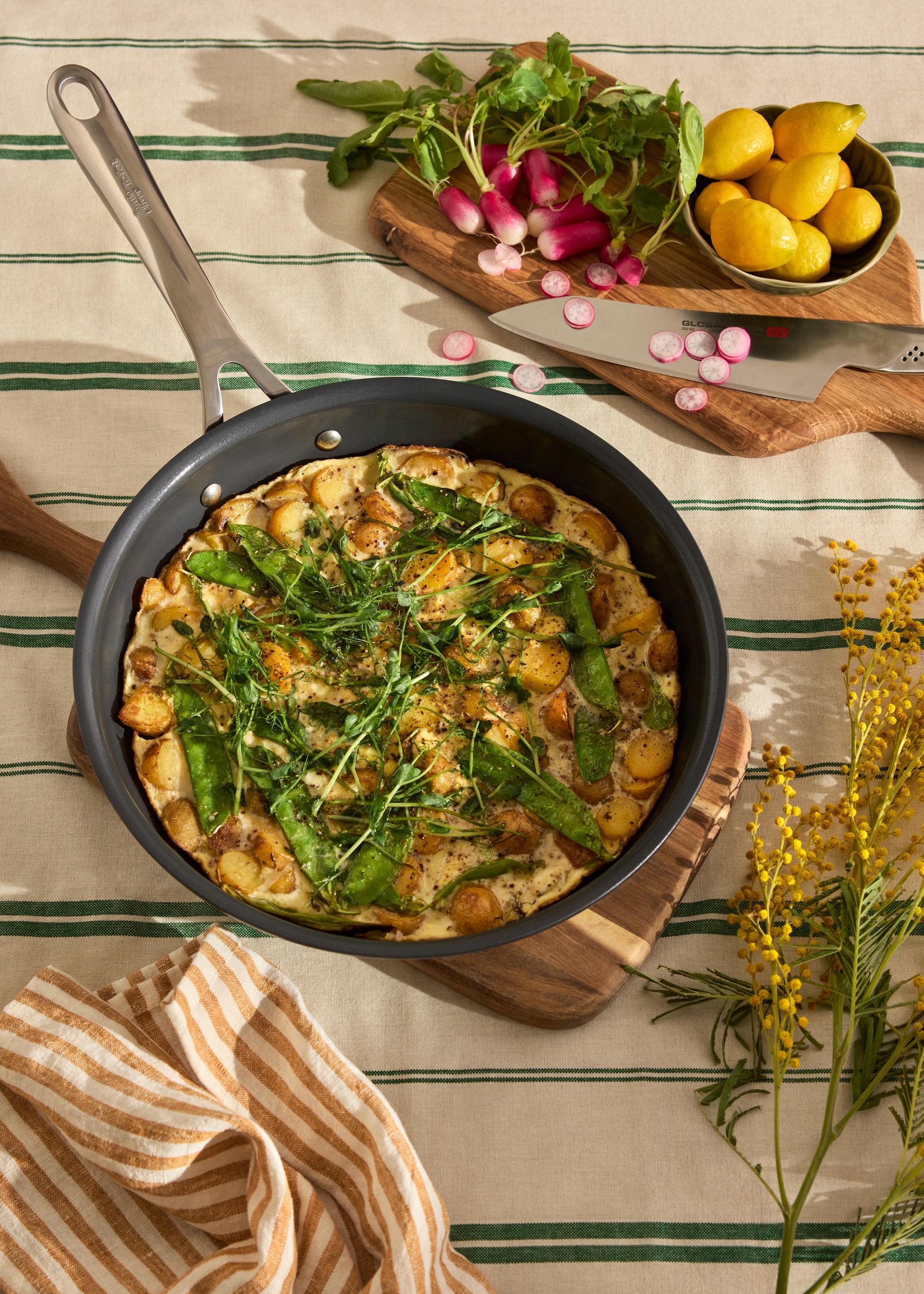 - Gör en matig omelett med potatis direkt i stekpannan och skär sedan i tårtbitar. Det blir ett fräscht inslag på påskbuffén.