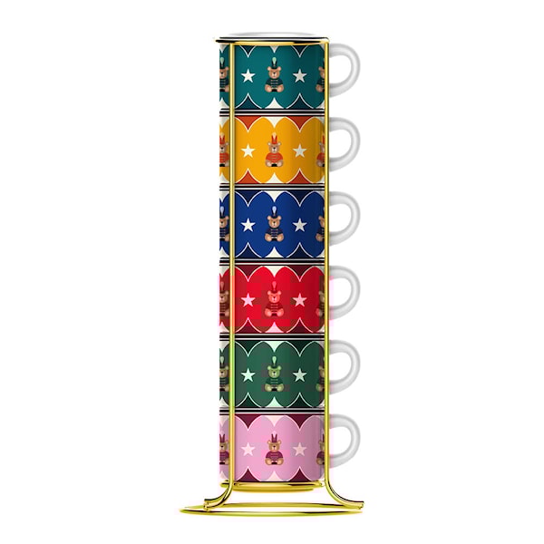 Joyful espressokoppar från Bialetti för med sig barndomens glädje och värme rakt in i kaffestunden. Detta färgstarka set består av sex stapelbara koppar à 6,5 cl – var och en dekorerad med unika nallebjörnar som väcker minnen av lek, kramar och små magiska ögonblick. Perfekta för espresso, och samtidigt en stämningsfull detalj på kökshyllan.