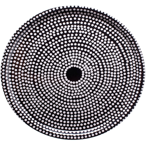 Detta stora runda bräde är tillverkat av laminerad björkplywood och pryds av det grafiskt stilrena Fokus-mönstret i svart och vitt. Med en diameter på 46 cm erbjuder det gott om utrymme för servering av bröd, ost, bakverk eller andra tilltugg.