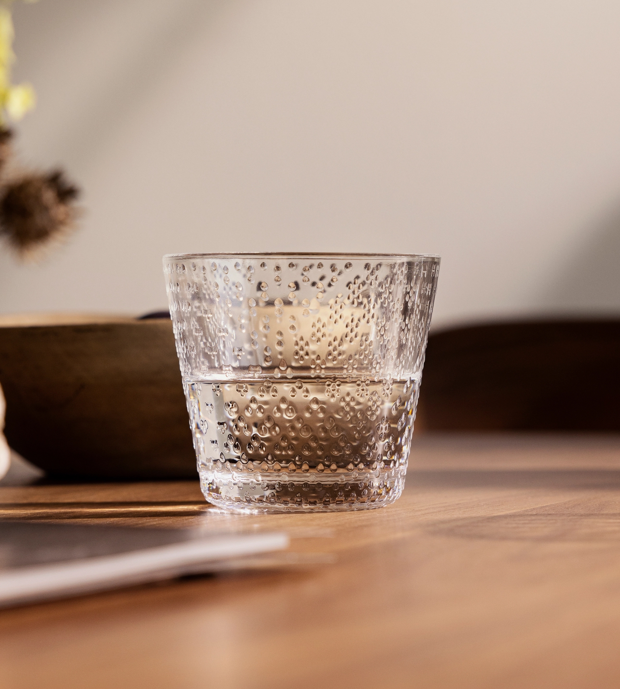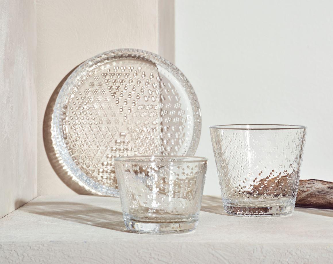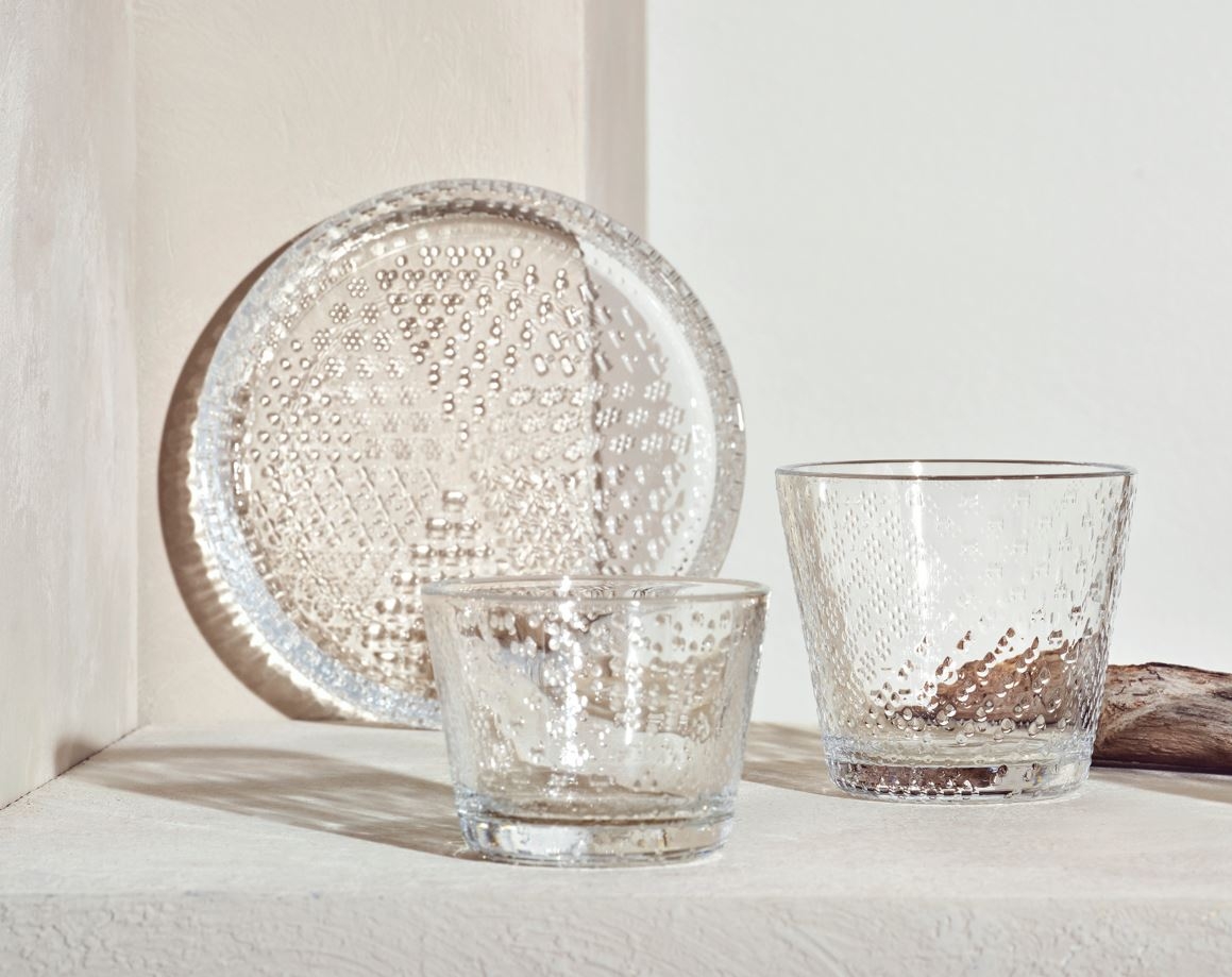 Tundra har återigen sats i produktion hos Iittala. Serien designades 1970 av Oiva Toikka, Finlands mest framgångsrika glaskonstnär. Glasserien Tundra är tålig som går utmärkt att diska i diskmaskin. Tallrikar tillverkade i transperant glas känns helt rätt 2023. Tundra är småmönstrat som tillsammans skapar en otroligt vacker helhet.